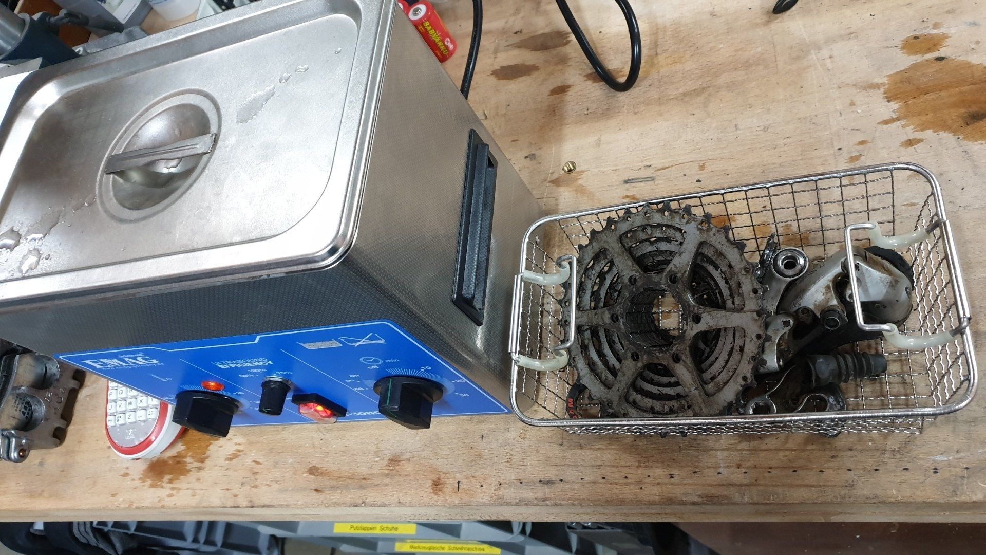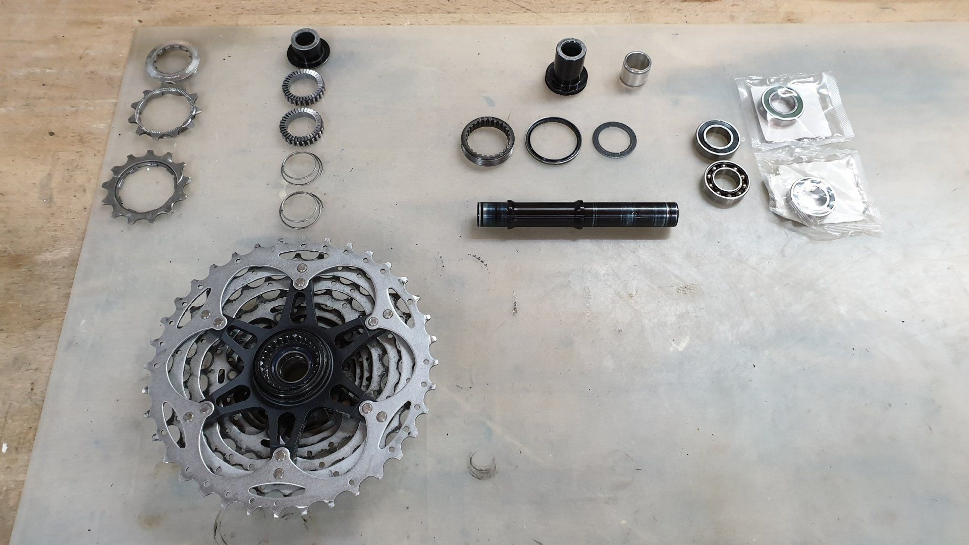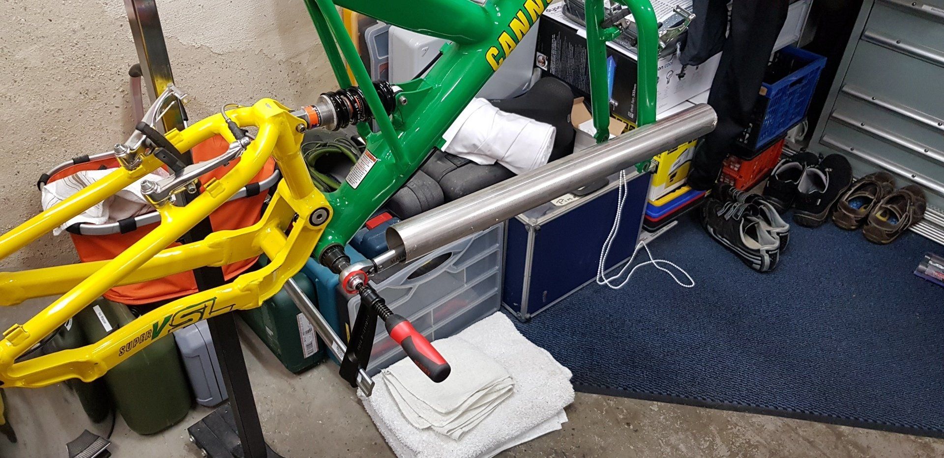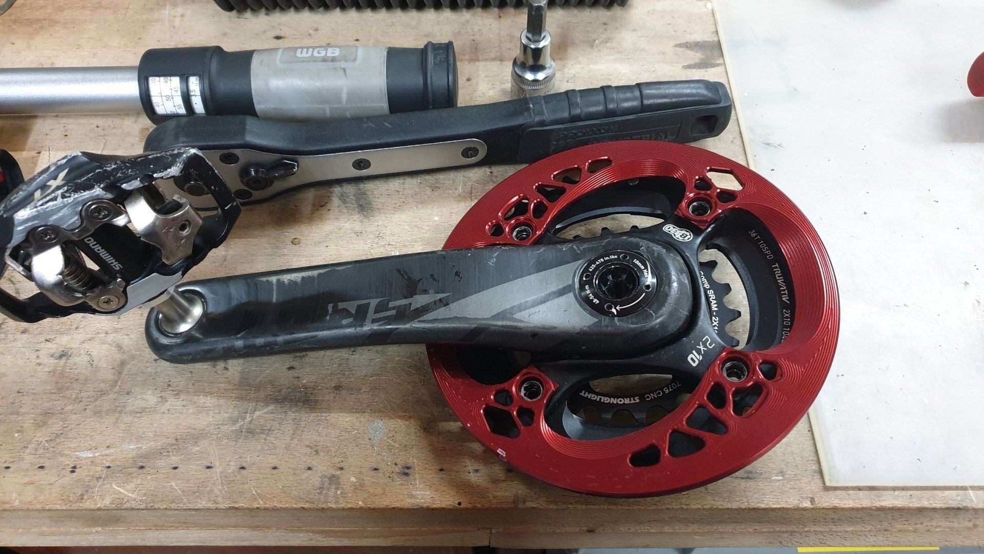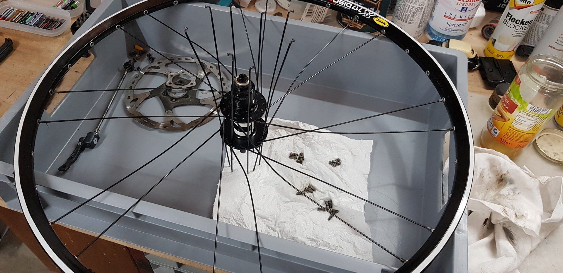 Teile des zerlegten Hinterbaus eines Fully zum Lagerwechsel